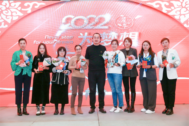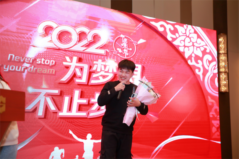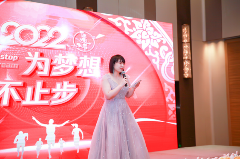 热烈的掌声中,王楠总裁上台致辞:对在场的全体员工表示衷心的感谢,也总结2021年全体员工的的努力与坚守!