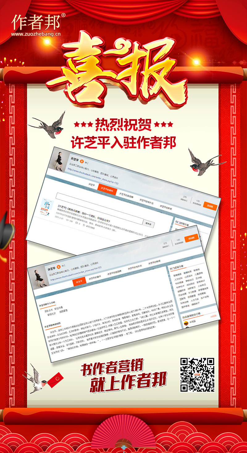 近日,全国职业核心能力优秀教师许芝平老师,正式入驻中国书作者营销平台作者邦,挥洒其在全国职业核心能力层面的青春活力。对于许芝平老师的入驻,作者邦表示真挚的祝贺。