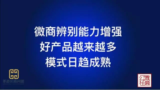 而大量新加入从业者无需基础的微营销教育,每个品牌方都有专业的培训团队,每个新的微商从业者基本上都有微商基础培训。帮助大家少走了弯路,大量的专业服务机构出现,比如培训机构、品牌顾问、会议公司等,这是一个行业逐步成熟的标志。
