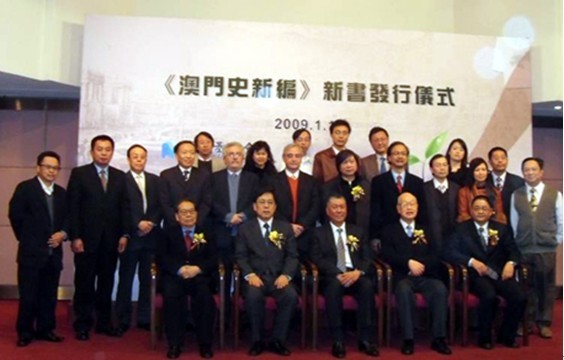 特首何厚铧(前排左三)接见中国策划学院客座教授严忠明博士(左一)等澳门问题研究学者