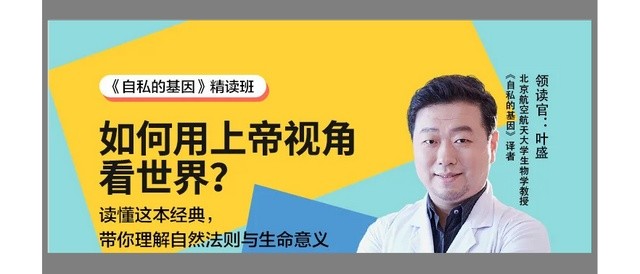 在《自私的基因》精读班中,北京航空航天大学生物学教授,《自私的基因》译者叶盛老师将用15讲的篇幅,带你重 温科学殿堂的永恒经典,用15讲的课程读懂基因,更读懂人性!