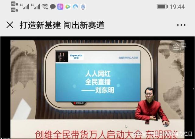 东明网红大讲堂创始人刘东明老师说,这是东明网红大讲堂第一个用网红直播带货改造大型企业传统营销方式的标准样板工程,落地在中国创维——创维万人营销员超级体验者网红计划,这也是在全国第一个举起网红直播改造企业营销的大旗。