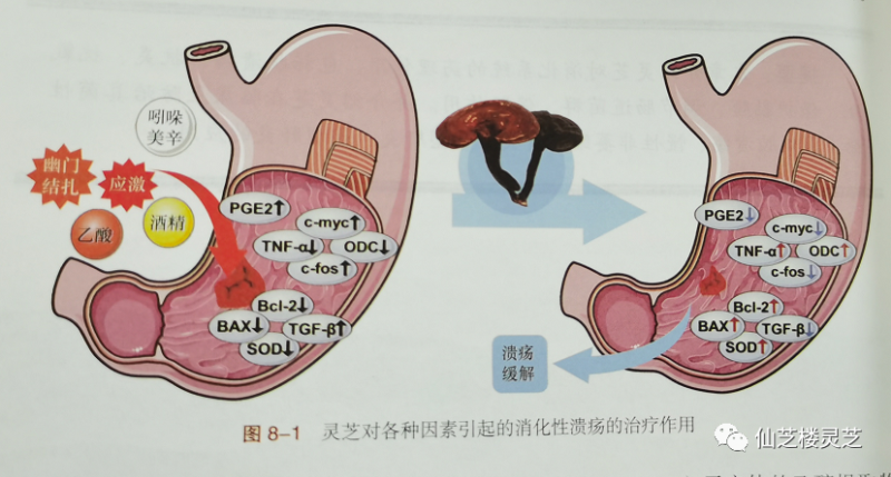 此外,灵芝破壁孢子粉和松杉发酵物对酒精引起的胃溃疡也有显著作用。