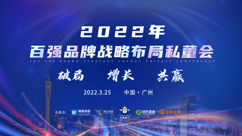 于2022年3月25日,由微赢共创、鸿亿系统、飞越旅行、佰氏健康、金财互联主办的《2022年百强品牌战略布局私董会》在广州举办,这也是2022年首场私董会,50多家品牌通过自己的实战经验分享2022年涅槃重生,破局增长的重要秘籍、专业的财税公司为你排忧解疑等;整个会议内容用最落地最实操的干货,赋能品牌2022年业绩持续倍增...........