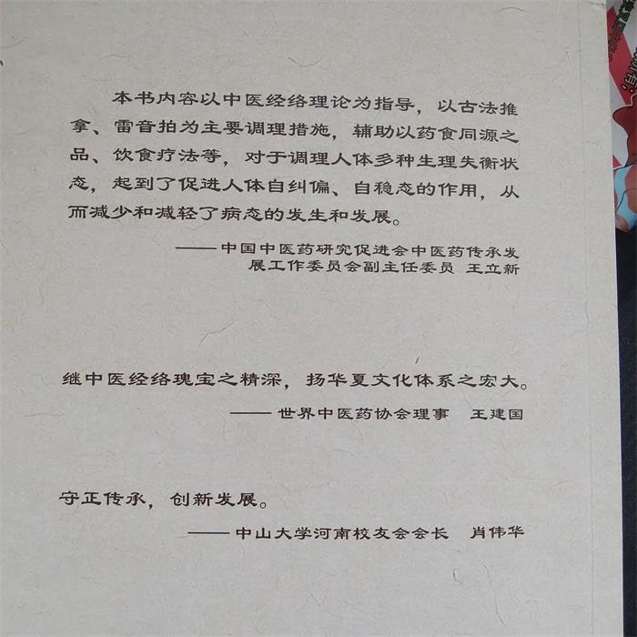我给她推荐了王洪刚先生写的《康养实用技术》这本书。这本书比较系统地介绍了王洪刚先生关于古法经络的研究成果,以科普的形式呈现给大家,具有较强的实用性。一学就会的经络按摩会帮我们摆脱亚健康,使我们自己以及自己的亲人,朋友都能受益。