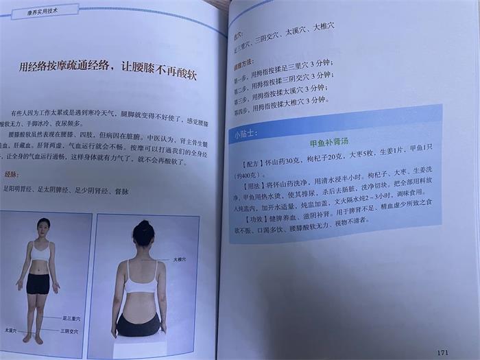 现在人工作压力很大,睡得晚,饮食不规律,身子虚亚健康状态很常见,我们应该关注自己健康,看看康王实用技术这本书会很有帮助,例如穴位对应,用的是真实人物图片,选穴,既调理方法,其实亚健康问题不是病不足以吃药,但是食补一下还是很有必要的,这本书的精妙的地方就是,针对每一种疾病,都有对应的食疗配方