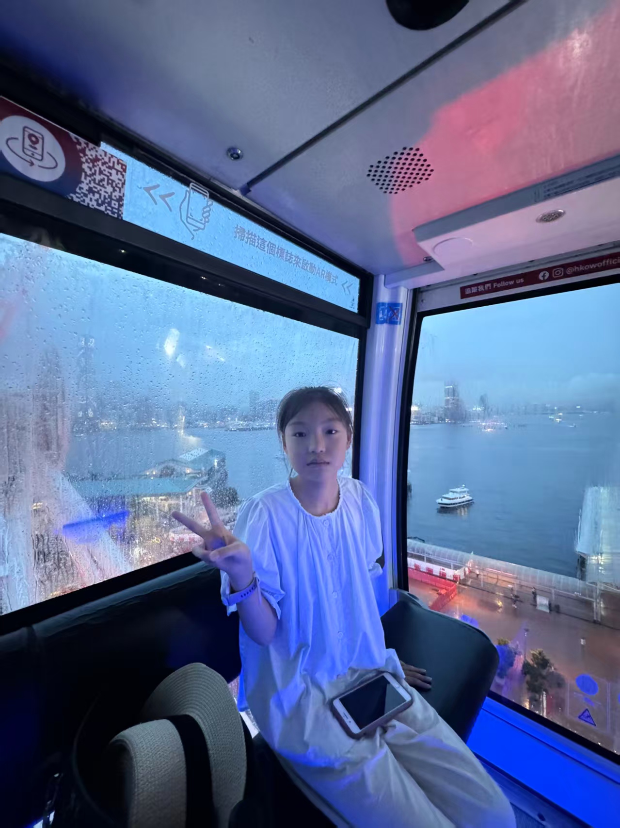行程的一大惊喜,是乘坐香港摩天轮。摩天轮票价十分亲民,花费不多就能坐上座舱,缓缓升至高空,全程转动两圈,将维港及周边风光尽收眼底。随着座舱升高,维多利亚港的碧波、中环的高楼、尖沙咀的繁华街景依次展开,360 度无死角欣赏香港美景。微风从窗外拂过,俯瞰脚下的城市风光,既刺激又浪漫。性价比超高的体验,成为此次香港之行的难忘瞬间。