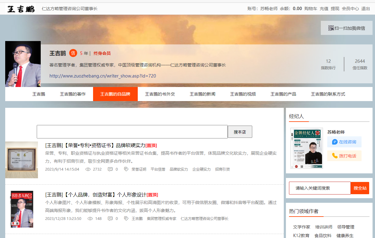 为让对接方全面了解王吉鹏老师个人网站的内容储备,信任资产规划师苏畅老师同步展示了网站页面截图,直观呈现丰富多元的内容生态。从专业文章到动态资讯,网站内容覆盖王吉鹏老师在相关领域的研究成果、实践案例与行业洞察,形成了极具价值的内容矩阵。