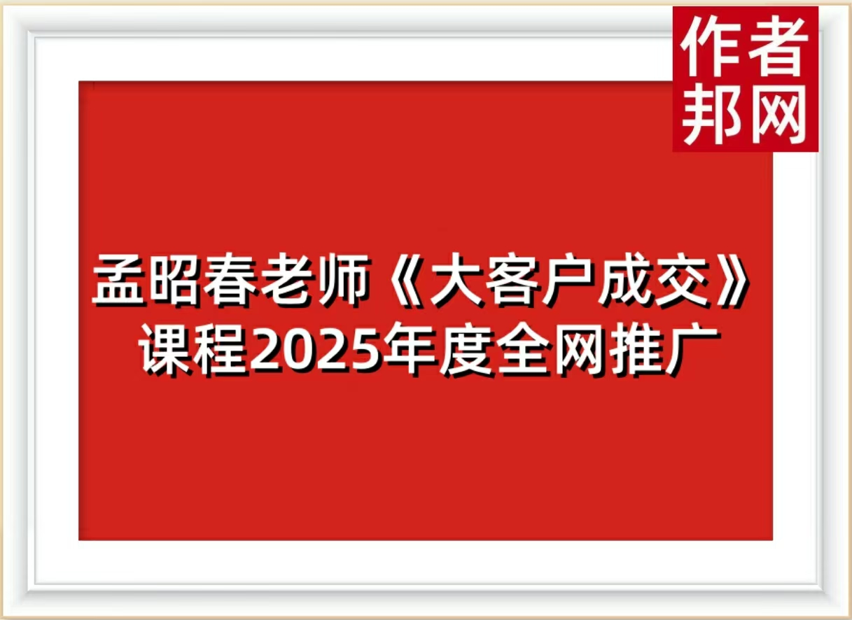 近日,著名营销战略管理专家孟昭春老师与作者邦正式达成合作,双方将围绕《大客户成交》课程展开2025年度全网推广合作。这一合作标志着孟昭春老师的课程品牌将迈向更广阔的市场,同时也为更...