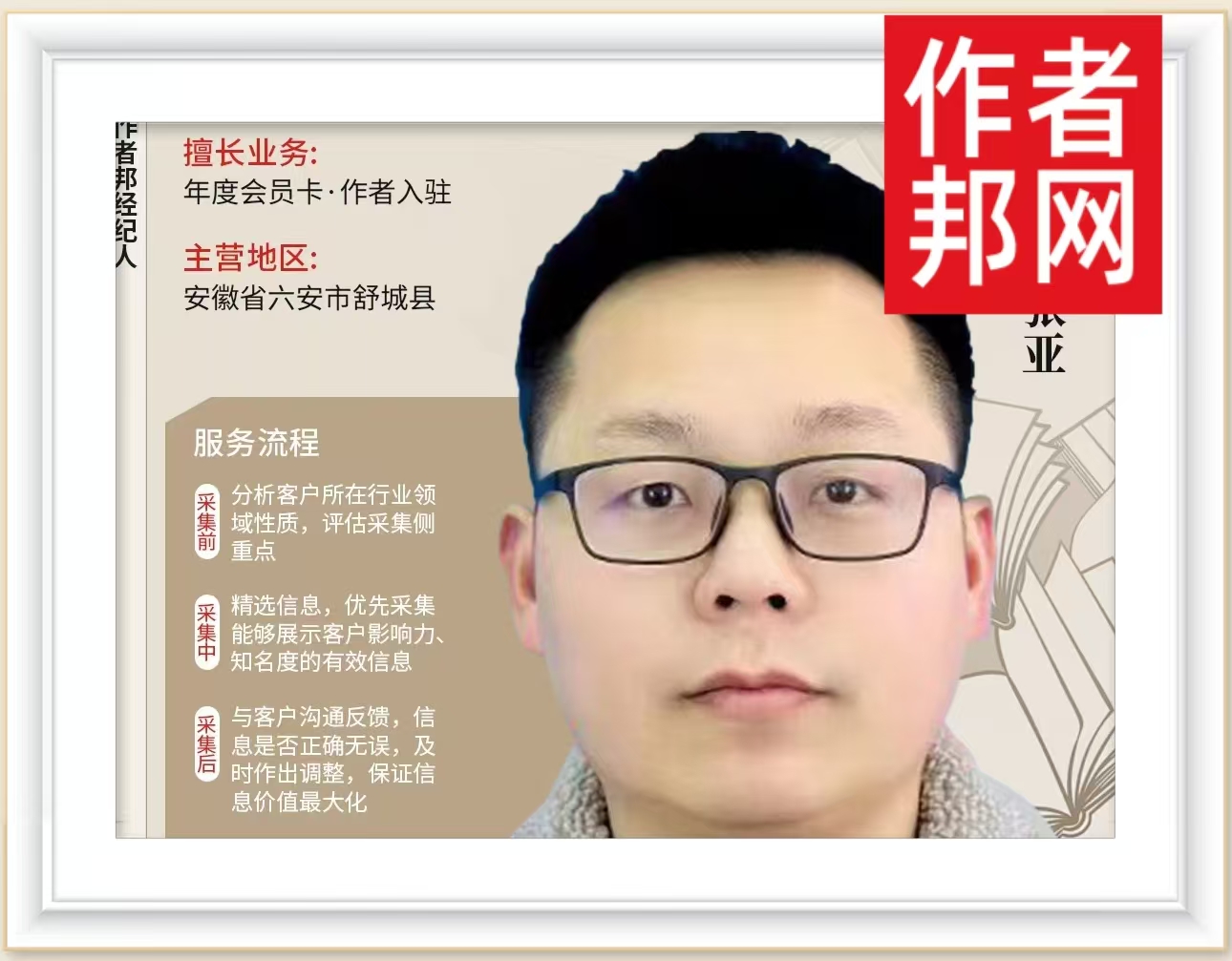 近日,作者邦网接待了来自沈阳地区的访客用户,作者邦网经纪人用耐心、真诚以及友善的态度,为访客用户提供了细致而温馨的解答服务。从中,传递出了作者邦网真诚待客、客户至上的初心原则。据作...