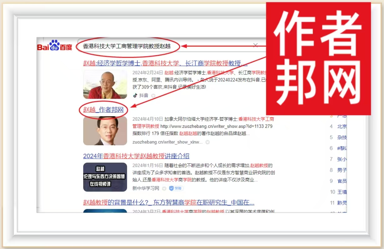 在学术界和商业领域,赵越教授的名字已经成为一个响亮的标签。作为香港科技大学工商管理学院的杰出教授,同时也是一位畅销书作家,赵越教授的个人营销网站近日被百度收录,并在首页展示,这不仅...