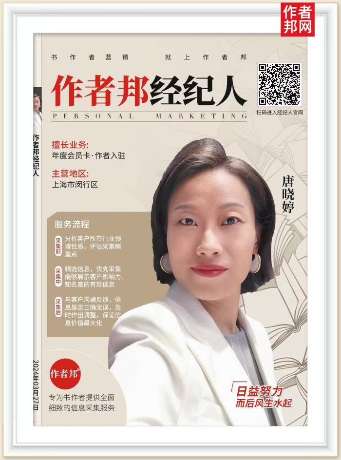 在业务领域上,唐晓婷擅长各行业书作者个人以及文学作品的推广与营销,包括但不限于小说、散文、诗歌、传记等。她对文学市场有着敏锐的洞察力,能够准确判断作品的潜在价值,并为作者提供量身定制的推广策略。作为作者经纪人,唐晓婷承担着重要的信息收集与上传任务。她定期收集闵行区书作者的最新作品信息、创作动态以及个人简介,通过作者邦的平台进行上传,确保这些信息能够及时、准确地传递给互联网、读者及媒体,以提升作品的知名度和影响力。
