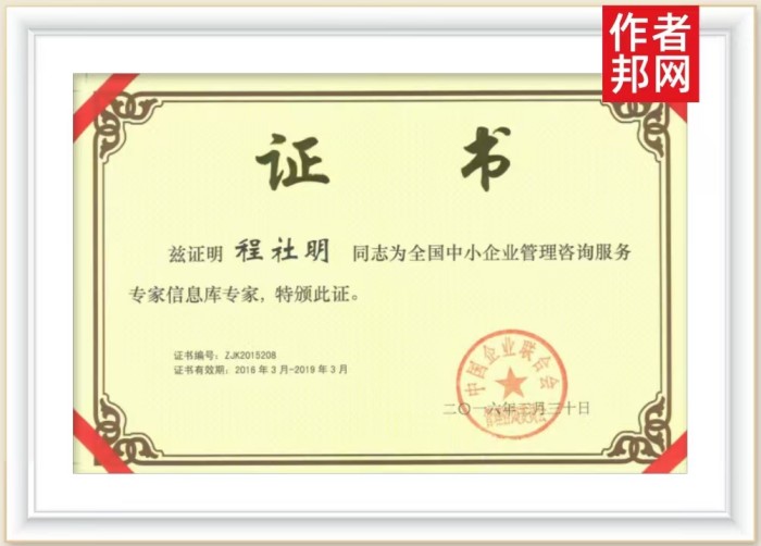 (程社明老师被证明为全国中小企业管理咨询服务专家信息库专家)