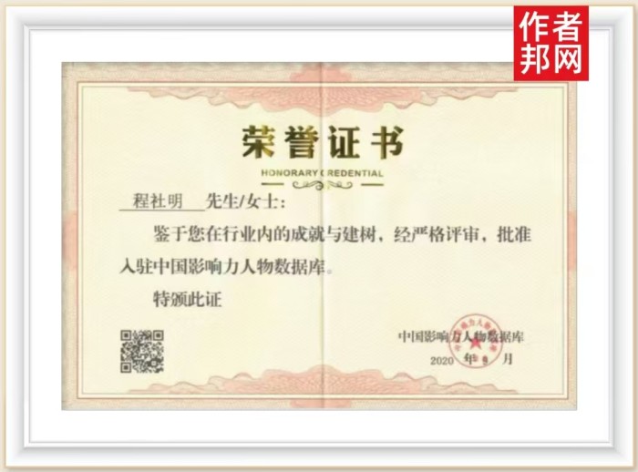(程社明老师被名人百科授予“行业影响力人物荣誉称号”)