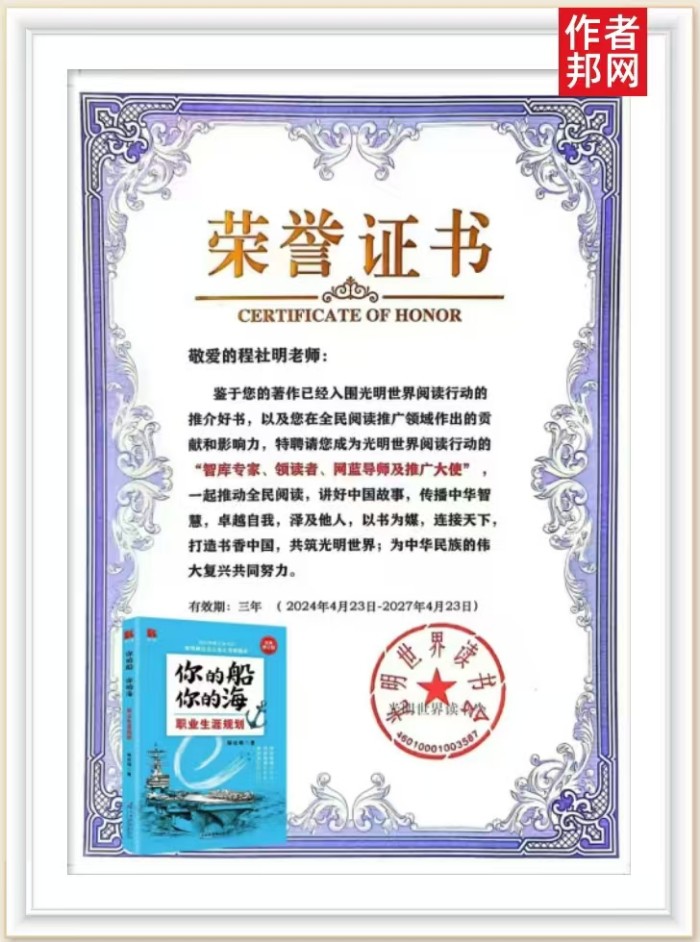 (程社明老师被聘请成为光明世界阅读行动的“智库专家、领读者、网蓝导师及推广大使”)