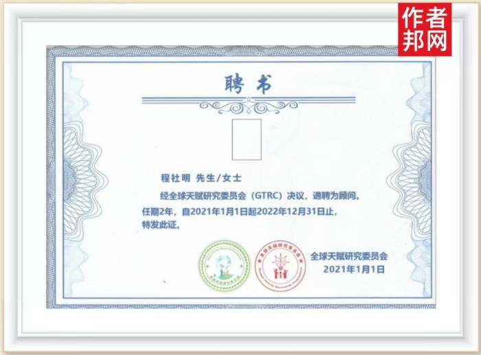 (程社明老师被聘为”全球天赋研究委员会(GTRC)顾问“)