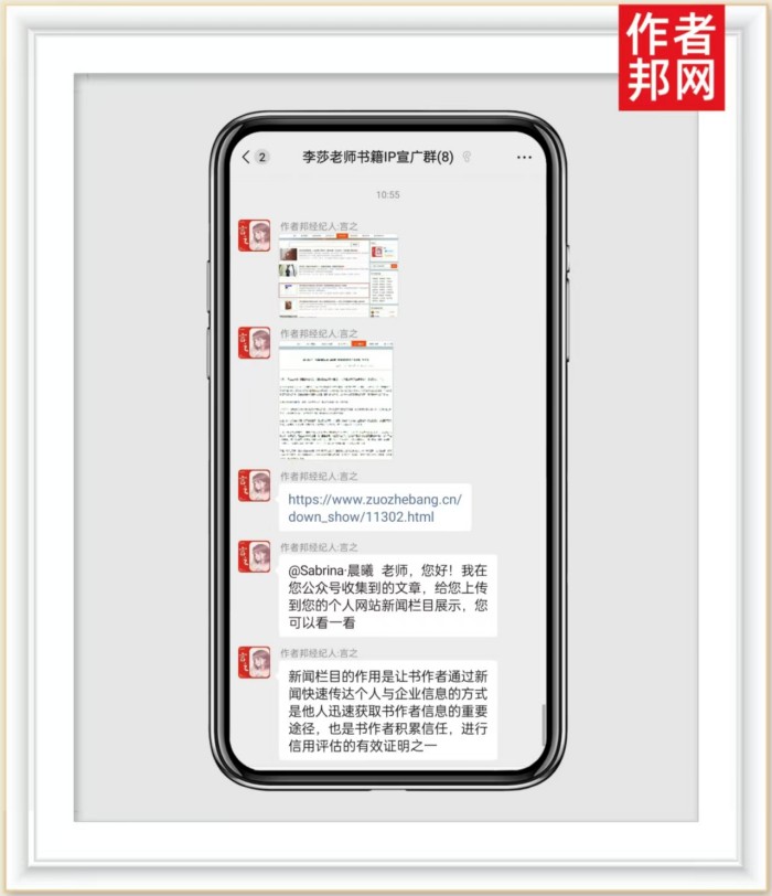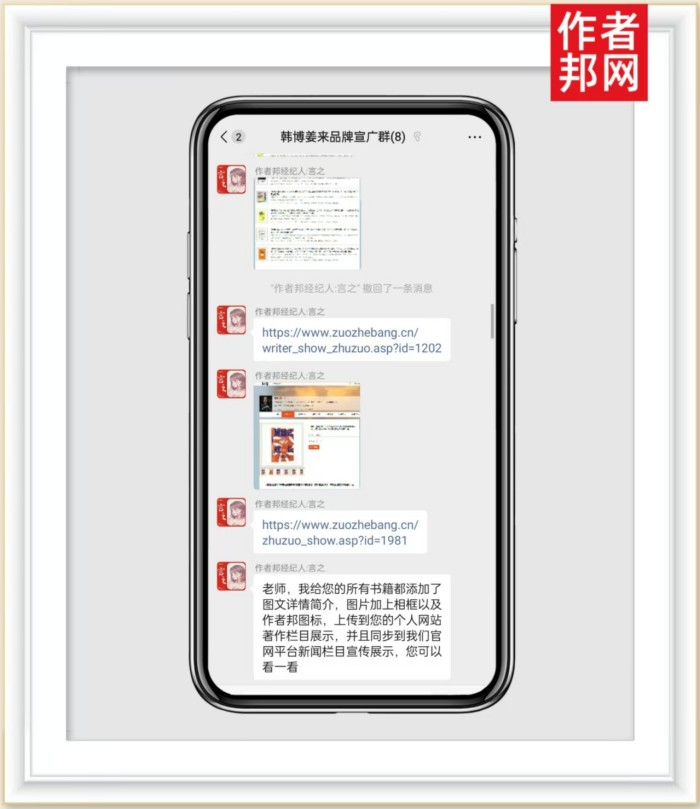 作者邦经纪人关注作者书籍出版动向,有新出版书籍及时上传网站著作栏目展与销售示,并为会员作者剪辑制作书籍视频上传展示。
