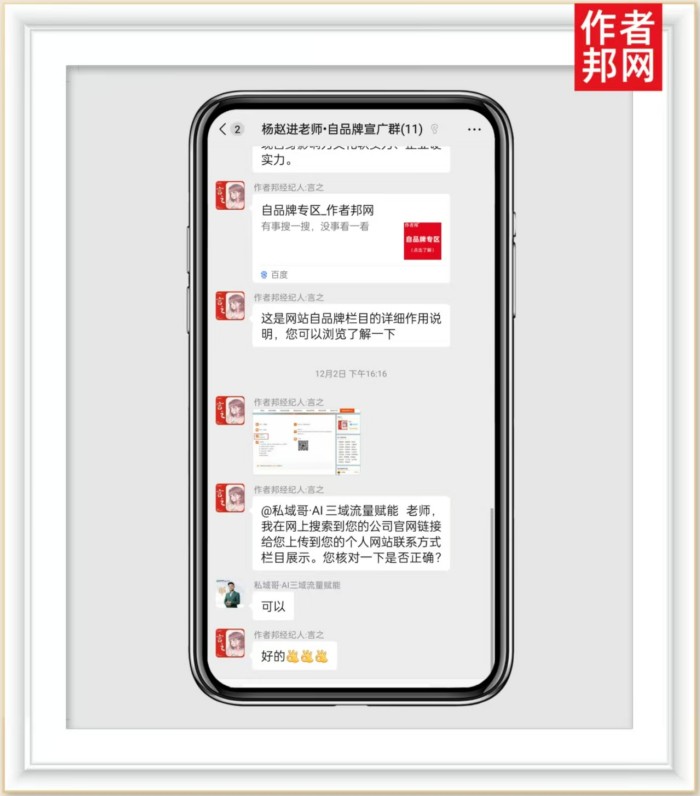 作者邦全职经纪人,日常负责将书作者信息,采集、整理、上传、累积到作者个人网站上,形成品牌传播,和个人、品牌、企业软实力打造,并随着时间的积累,形成数据资产以及数字信用。