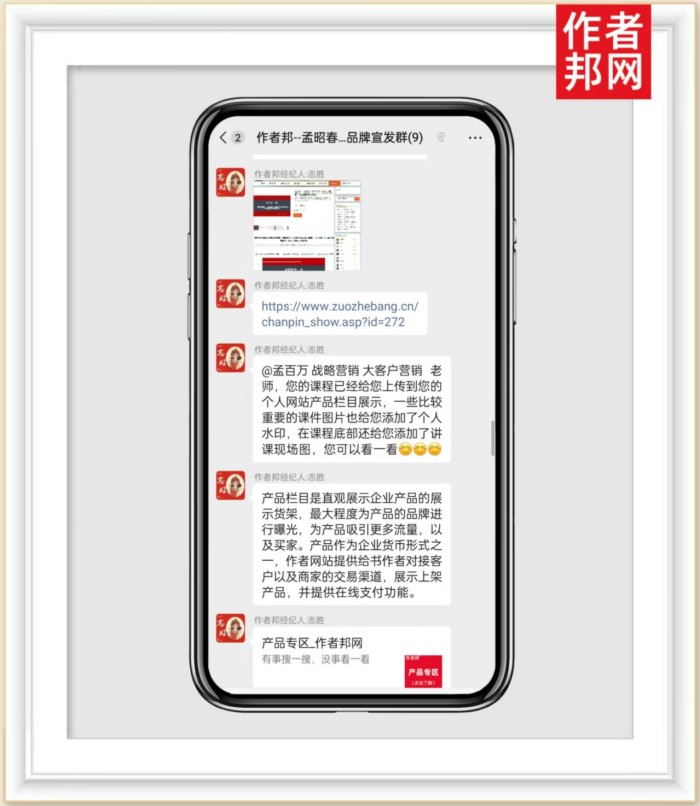 作者邦经纪人关注作者的个人或企业的课程、产品的信息,收集上传到产品栏目展示与销售,根据产品内容做超链接、图片美化等工作,并做标题、简介与关键词编写,有利于百度、360、搜狗、谷歌等搜索引擎平台收录。
