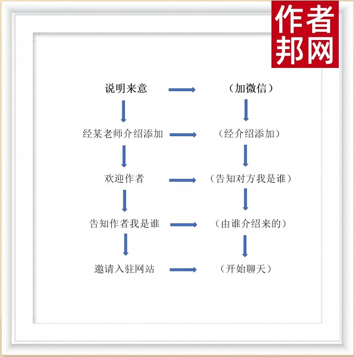 跟作者说明通过谁添加的新作者微信,并邀请入驻网站。