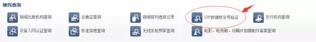 2、找到网页下方的“便民查询”,点击进入“CIP数据核字号验证”;