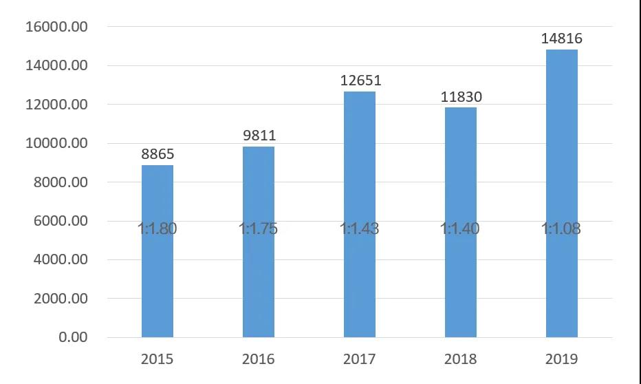 图16 2015~2019年全国出版物版权输出数量及版贸逆差