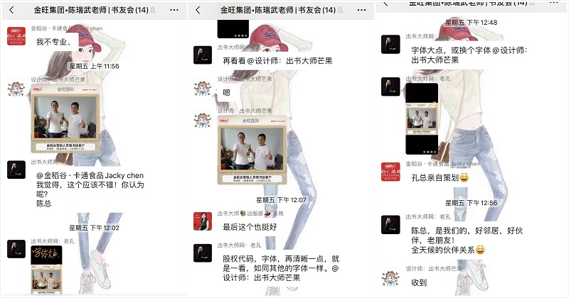 近日,在为金旺集团董事长陈瑞武先生的一次设计服务中,出书大师网CEO孔斌先生便亲自下场,为出书大师网团队树立起了优秀的典范。他凭借着多年来累计的丰富经验,一针见血的找出了问题所在,亲自对接美工设计、文案策划,不断的调整排版和角度,期间不断询问客户的意见和反馈,通过一次又一次的实验,终于向客户呈现了一份满意的答卷,为其个人品牌的传播提供了强有力的支撑。