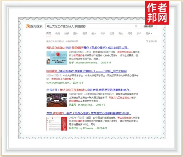 在众多读者粉丝的热烈追捧下,欧阳健舒老师的个人品牌得到了广泛传播,越来越多的人通过网络搜索其相关信息,了解其著作与品牌。近日,欧阳健舒书作者关键词更是凭借着庞大的搜索量霸屏360、搜狗、百度三大平台,关键词被成功收录,影响力得到广泛传播。