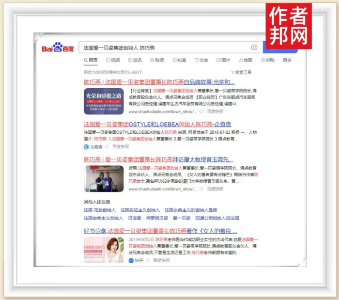 它们都有着庞大的用户,专业的后台数据处理,还有精准的内容筛选和流量推送,可以为用户高效、便捷的提供其检索内容信息。伴随陈巧燕女士相关关键词成功入驻此三大权威平台,除了官方的流量推送之外,广大网友只需要输入关键词,词条链接便会自动弹出,直接而有效的实现了陈巧燕女士个人品牌内容的传播。
