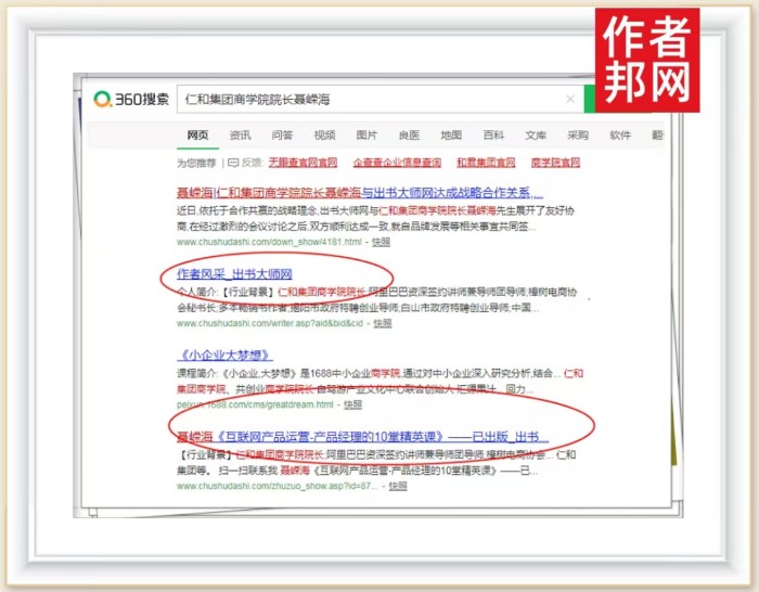 经相关媒体效应的传播与积累,以聂嵘海先生为核心的头条资讯在360、搜狗、百度等权威平台不断出现,只需要在平台搜索引擎输入“聂嵘海”相关关键词,便能获得详细且全面的信息新闻,并通过平台的不断推广,形成了大量品牌信息的流入,不断提升其品牌影响力。