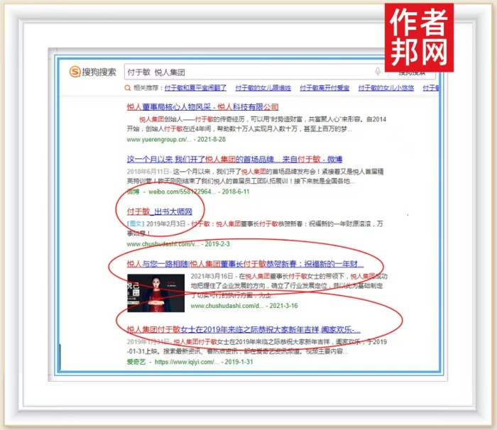 近日,经相关媒体报道,以付于敏女士为核心的书作者关键词霸屏360、搜狗、百度三大平台,出现了品牌流量效应,要想获取相关信息,只需在平台搜索界面输入“付于敏”相关关键词,便会迅速跳转界面进入品牌页面,快速完成信息的输送,推动了品牌快速流入市场,同时增加了付于敏女士在行业品牌影响力。