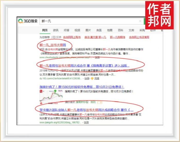 近日,卡维达商务集团有限公司董事长郭一凡书作者关键词置顶360、搜狗、百度平台,不仅带来了流量内容,也形成了以郭一凡先生为核心的流量品牌IP,粉丝读者只需在平台界面搜索“郭一凡”相关关键词,便会迅速跳转页面连接品牌信息,至此郭一凡先生的行业知名度与品牌影响力飞速提升。