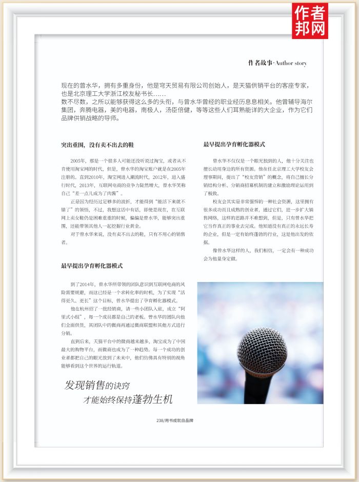 现在的曾水华,拥有多重身份,他是穹天贸易有限公司创始人,是天猫供销平台的客座专家,也是北京理工大学浙江校友秘书长...数不尽数,之所以能够获得这么多的头衔,与曾水华曾经的职业经历息息相关。他曾辅导海尔集团,奔腾电器,美的电器,南极人,汤臣倍健,等等这些人们耳熟能详的大企业,作为它们品牌供销战略的导师。