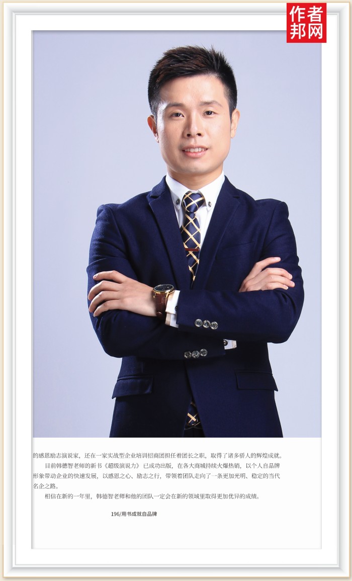 目前韩德智老师的新书《超级演说力》已成功出版,在各大商城持续火爆热销,以个人自品牌形象带动企业的快速发展,以感恩之心、励志之行,带领着团队走向了一条更加光明、稳定的当代名企之路。