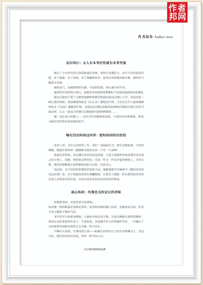 而这些,对于时间的管理的经验和方法,她都悉数写在畅销书《哪有没有时间这回事》里,对于需要的读者们倾囊相授。让更多人像她一样在相同的时间里比别人学到更多的东西,从而完成更多的目标和更好的效果。