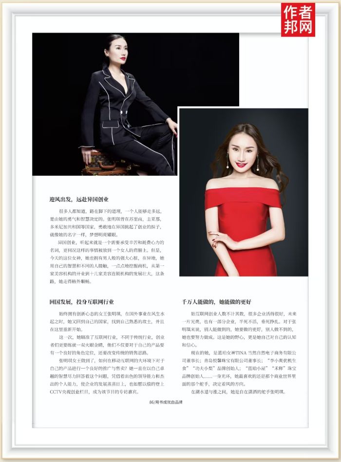 张明琪女王做到了,如何在移动互联网的大环境下对于自己的产品进行一个良好的推广与售卖?她一直在以自己卓越的智慧尽力回答着这个问题,凭借着出色的领导能力和杰出的个人能力,使企业的发展蒸蒸日上,也如愿以偿的登上CCTV央视创业栏目,成为该节目的专访嘉宾。