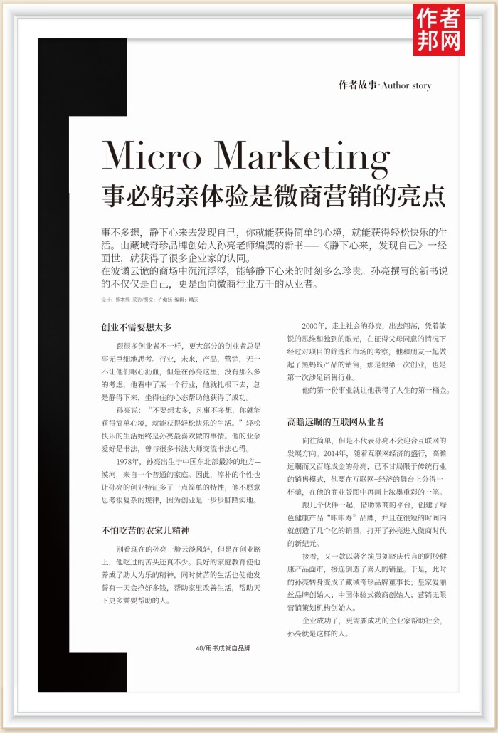 接着,又一款以著名演员刘晓庆代言的阿胶健康产品面市,接连创造了喜人的销量。于是,此时的孙亮转身变成了藏域奇珍品牌董事长;皇家爱丽丝品牌创始人;中国体验式微商创始人;营销无限营销策划机构创始人。