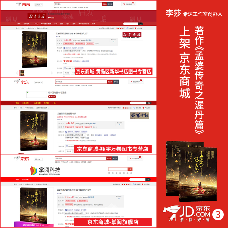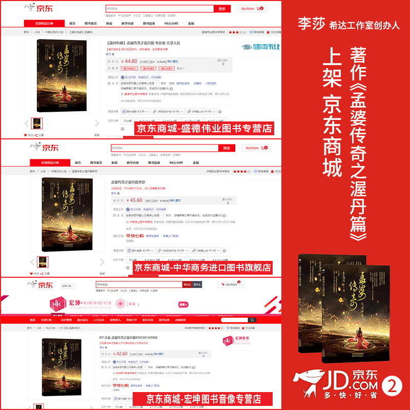 李莎:希达文化创始人李莎老师著作——《孟婆传奇之渥丹篇》上架知名购书渠道平台,京东商城