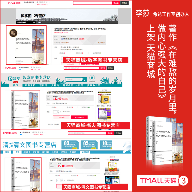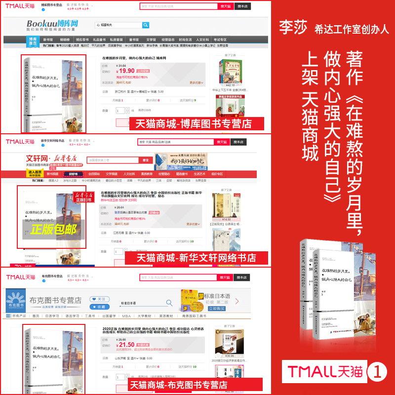 李莎:希达文化创始人李莎老师著作——《在难熬的岁月里,做内心强大的自己》上架知名购书渠道平台,天猫商城