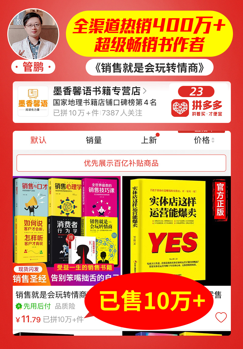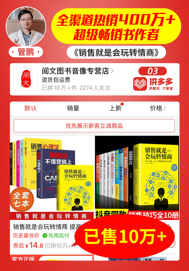 管鹏: 拼多多:联合图书专营店,销量10万+册