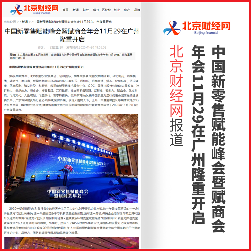 管鹏:中国新零售赋能峰会暨赋商会年会【北京财经网】报道