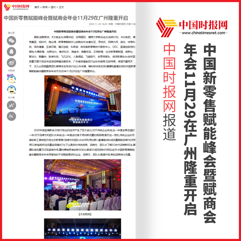 管鹏:中国新零售赋能峰会暨赋商会年会【中国时报网】报道