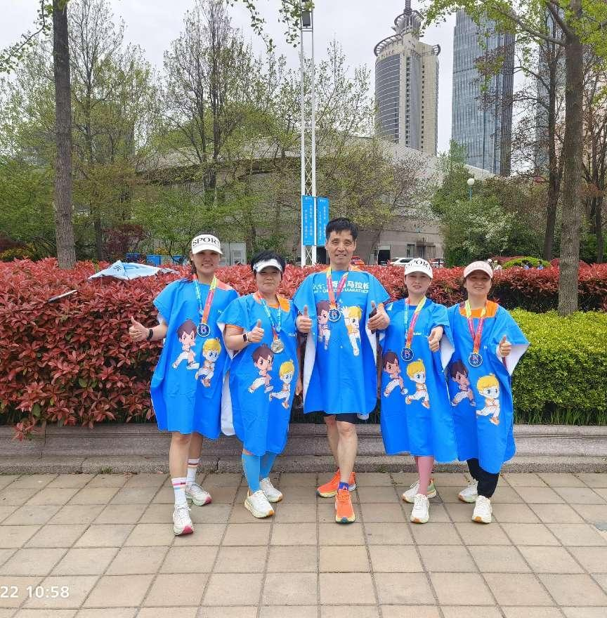 吴小芳: 刘桂花参加青岛马拉松比赛,与跑友合影