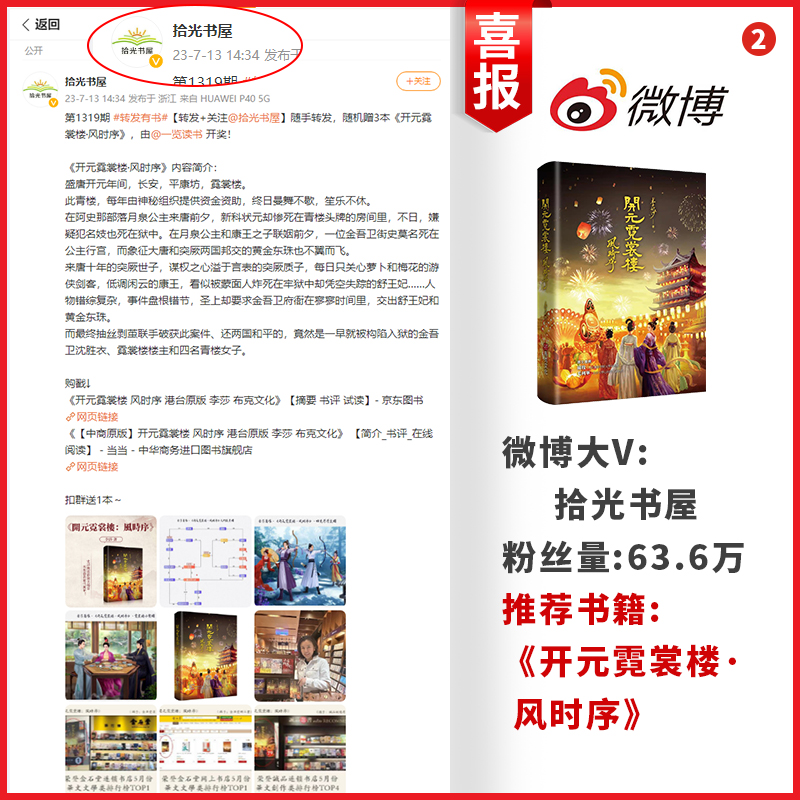 李莎:11万粉丝微博大V:阅读风尚,推荐《开元霓裳楼 :风时序》