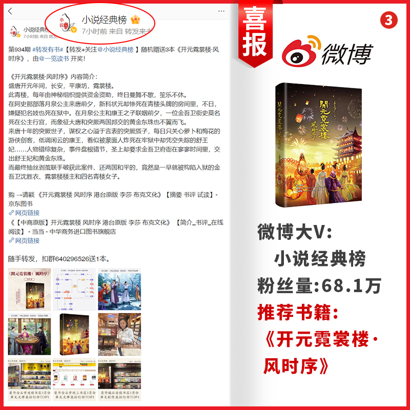李莎:68万粉丝微博大V:小说经典榜,推荐《开元霓裳楼 :风时序》