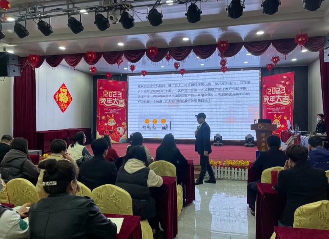李洋:所有学员都在认真听张福臣老师讲述农资、畜牧行业产品推广演讲技巧