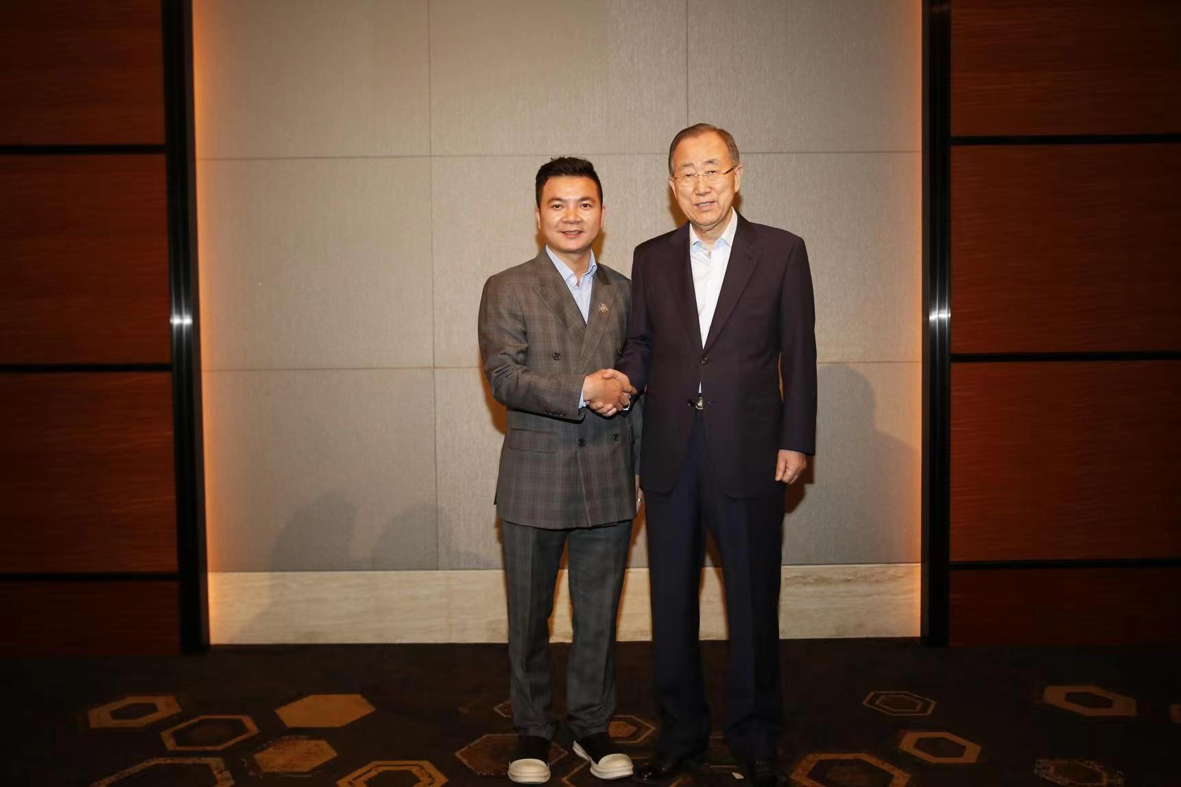 管鹏:银志老师(左)和第八届联合国秘书长潘基文合影
