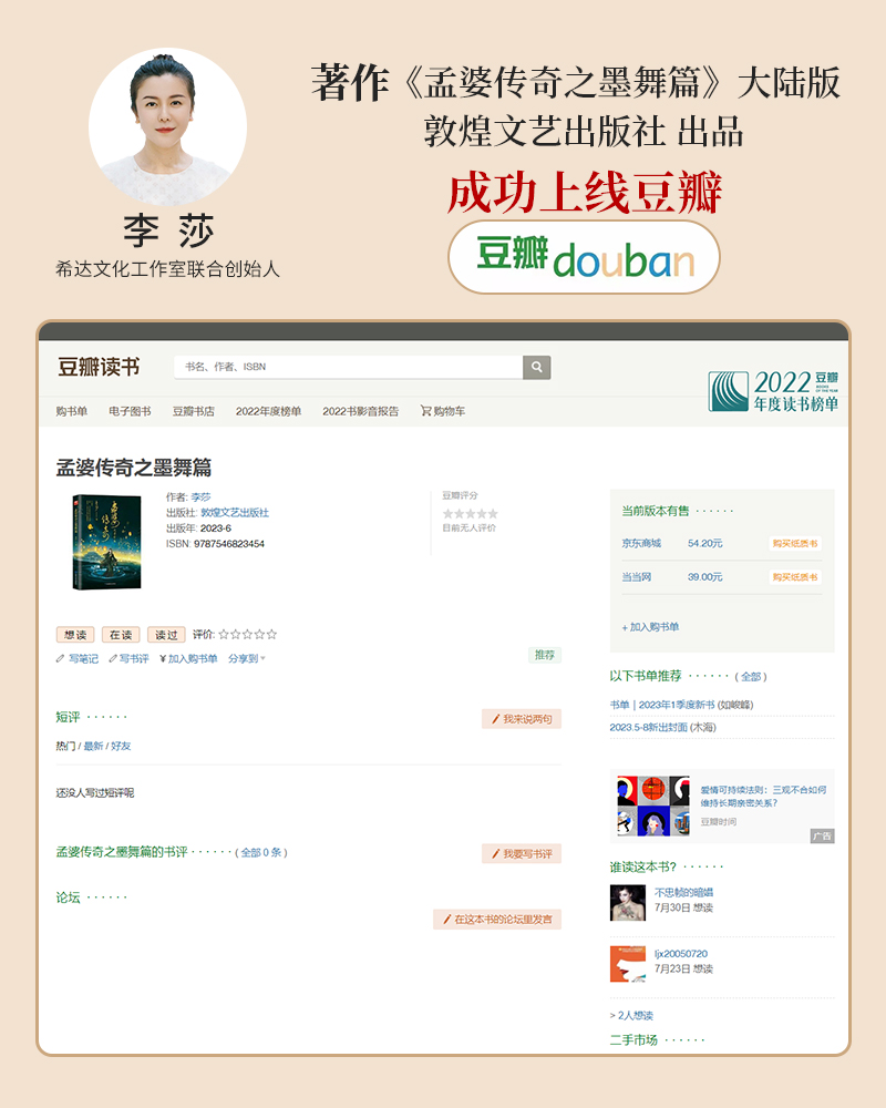 李莎:《孟婆传奇之墨舞篇》大陆版,成功上线豆瓣平台