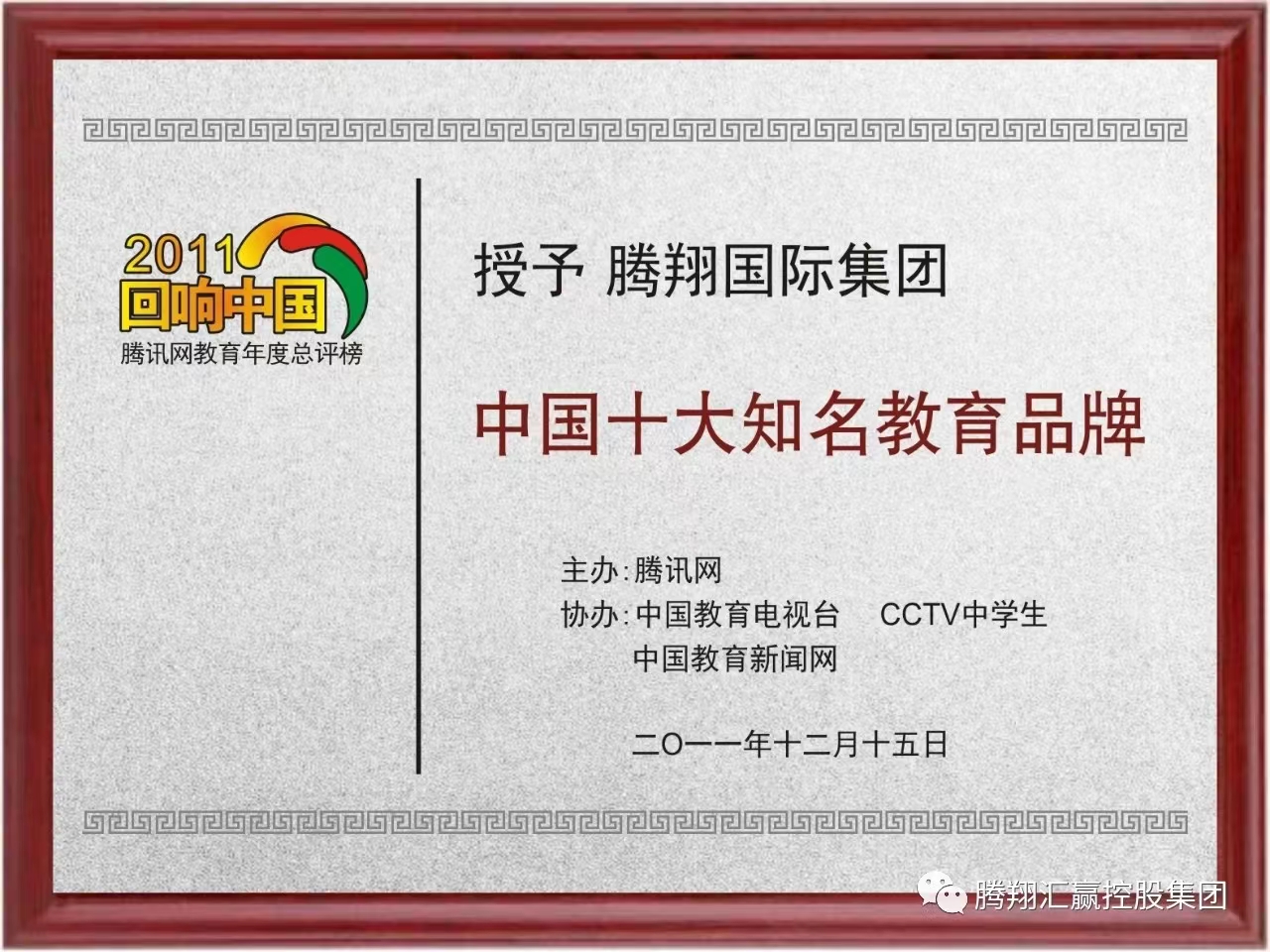 管鹏:中国联合商报社,中国工业合作协会等授予腾翔国际集团中国教育行业十大最具商业价值品牌