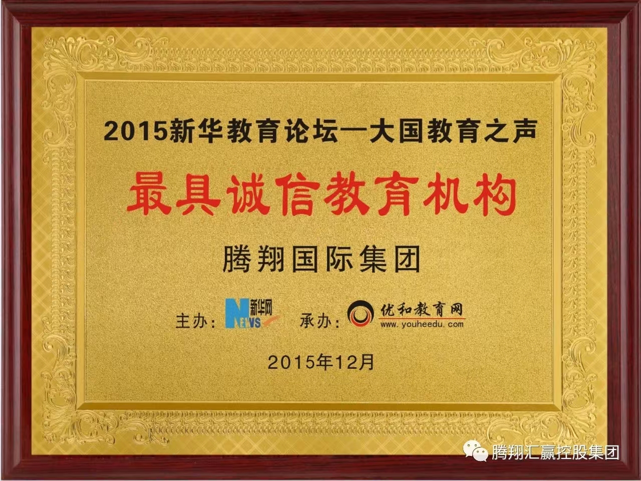 管鹏:2015新华教育论坛——大国教育之声授予腾翔国际集团最具有诚信教育机构